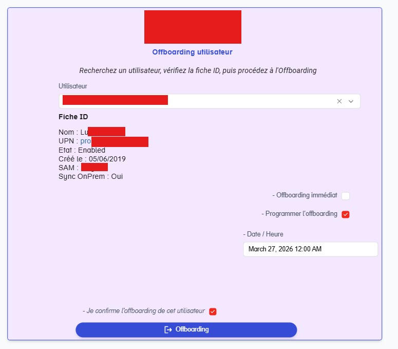 Génération de samAccountName, UPN, displayName, description selon vos règles.